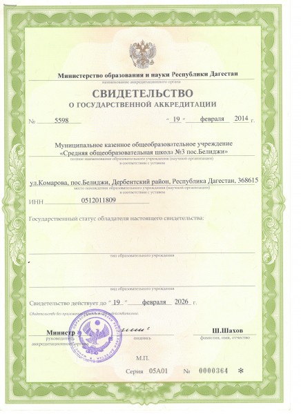 | Сокращенное наименование образовательной организации* | МБОУ "СОШ №3 п.Белиджи" |